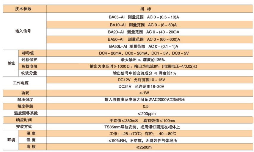 首頁 > 產(chǎn)品中心 > 互感器/變送器 > BA系列交流電流傳感器