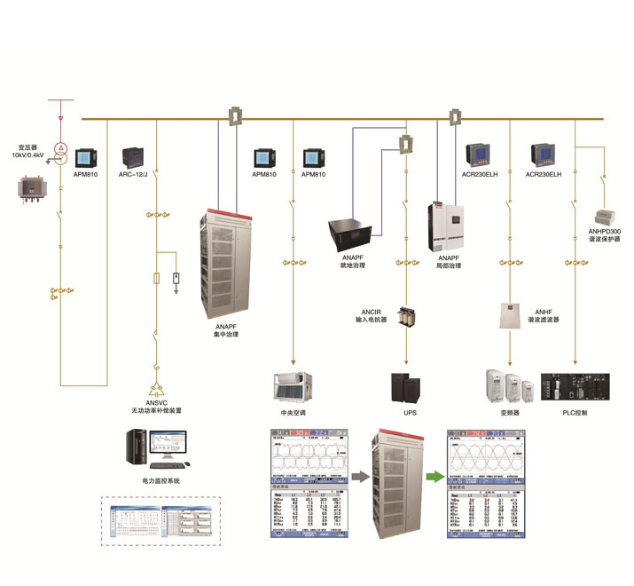 電能質(zhì)量分析與治理系統(tǒng)主要是研究消除供配電系統(tǒng)中的無(wú)功補(bǔ)償和諧波治理問(wèn)題,主要的產(chǎn)品有有源電力濾波器、低壓無(wú)功功率補(bǔ)償裝置、靜止無(wú)功發(fā)生器、混合動(dòng)態(tài)濾波補(bǔ)償裝置、混合動(dòng)態(tài)消諧補(bǔ)償裝置、智慧型動(dòng)態(tài)無(wú)功補(bǔ)償裝置、諧波保護(hù)器等,適用于新建、改建、擴(kuò)建和技改項(xiàng)目中工業(yè)與民用及公共建筑內(nèi)電氣設(shè)備的無(wú)功補(bǔ)償、諧波抑制及綜合治理等,可根據(jù)不同行業(yè)類型和負(fù)載類型的電能質(zhì)量問(wèn)題提供合適的設(shè)計(jì)解決方案,以達(dá)到改善供電質(zhì)量和確保電力系統(tǒng)安全經(jīng)濟(jì)運(yùn)行的目的。