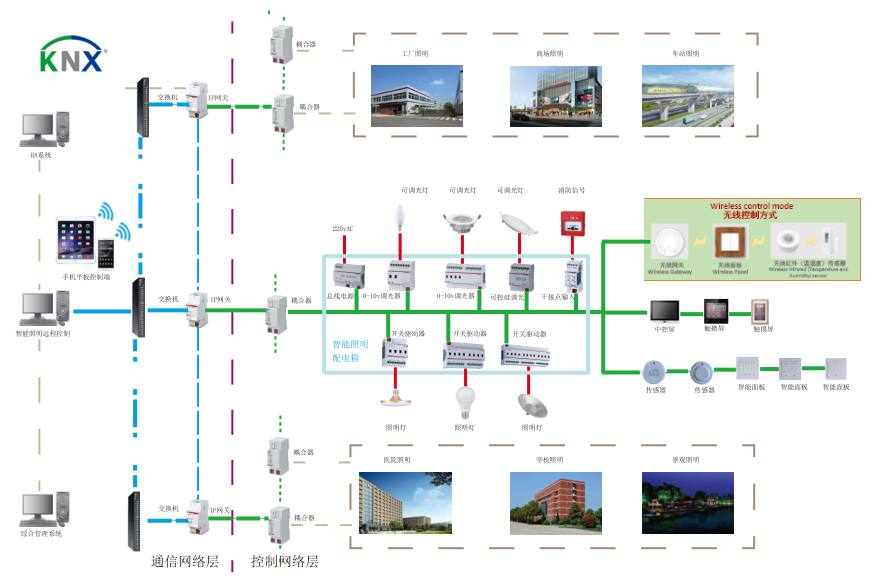 系統(tǒng)通過標(biāo)準(zhǔn)的2*2*0.8EIB BUS總線(即KNX總線)將所有的智能照明控制模塊連接到一起,并組成一套完整的控制系統(tǒng)。該系統(tǒng)理論最大連接控制模塊數(shù)量達(dá)58000多個(gè),在實(shí)際項(xiàng)目應(yīng)用中,系統(tǒng)即可實(shí)現(xiàn)照明燈具的遠(yuǎn)程集中控制,又可實(shí)現(xiàn)就近控制功能。其靈活多樣的智能化控制及龐大的設(shè)備容量,特別適用于醫(yī)院、學(xué)校、酒店及各類體育場(chǎng)所、機(jī)場(chǎng)、隧道等大型公建項(xiàng)目照明系統(tǒng)的智能化控制。